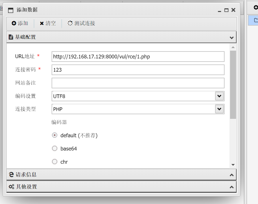 我们看到 POST 请求,name 有 txt 和 submit,我们的 txt 相当于 123,而 submit 我们就需要在蚁剑中设置。