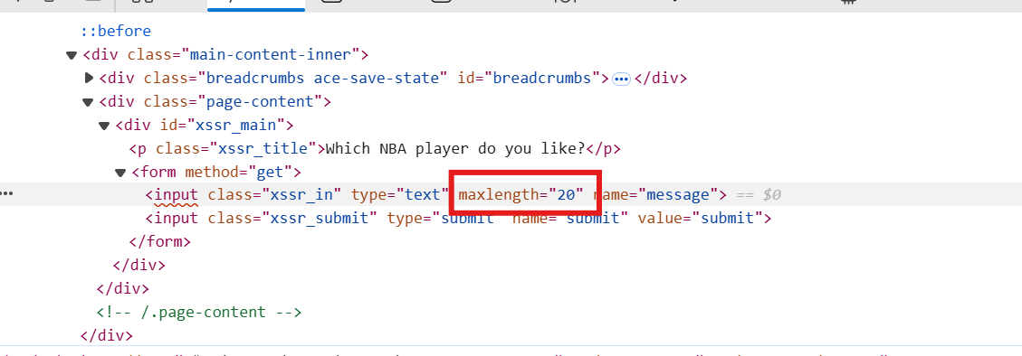 这个简单,这种就是用了 HTML 的语法限制。我们浏览器调试一下。把 maxlength 改成 100 甚至更大。