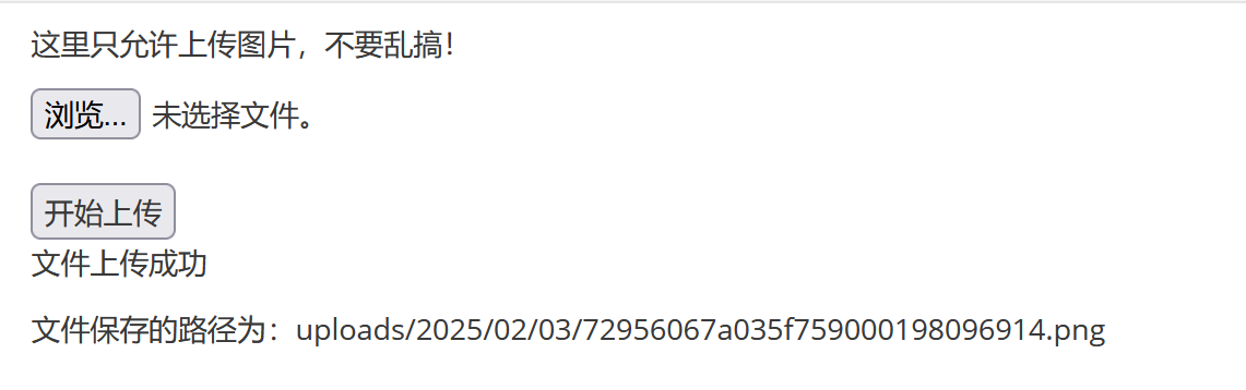 我们采用了禁止 JS 代码运行,我直接上传了一句话木马,网页直接给我了相对位置了。