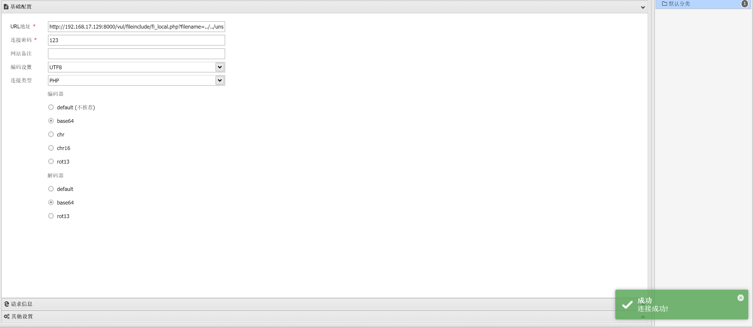1 | http://192.168.17.129:8000/vul/fileinclude/fi_local.php?filename=file2.php&submit=%E6%8F%90%E4%BA%A4%E6%9F%A5%E8%AF%A2 |