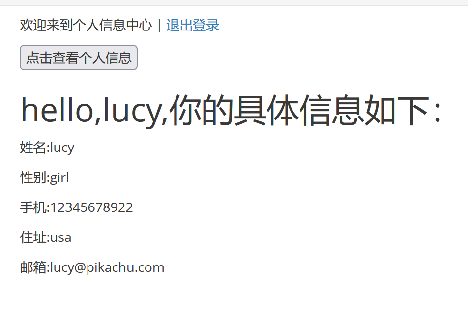发现改成 lucy 的,在 kobe 页面也可以看到 lucy 的个人信息,这就是水平越权漏洞了。同样的可以看到 lili 的信息。
